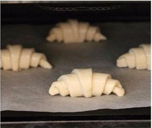 Выпекать круассаны нужно в заранее разогретой до 220 градусов духовке на пергаменте от 15-30 минут (зависит от размера).