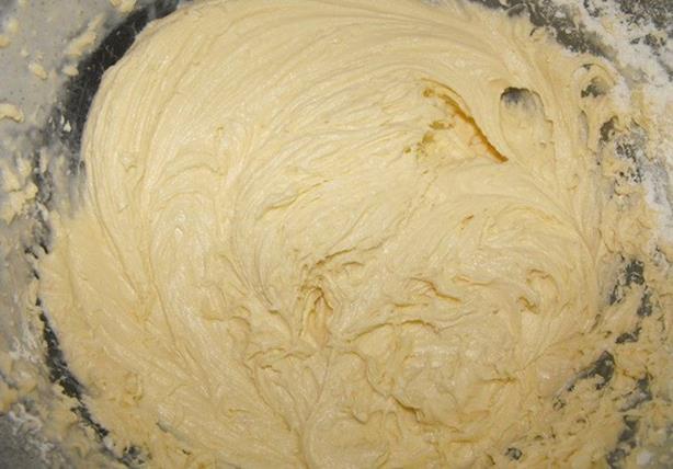Во вторую половину добавляем муку и разрыхлитель, получается нежное, легкое тесто.