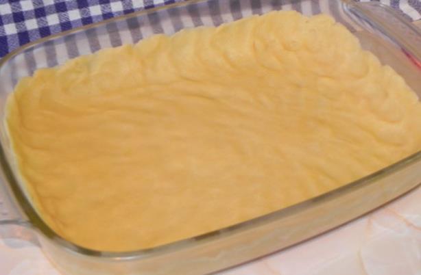 Выложить тесто в форму, поднимая края и охладить в холодильнике 30 минут.