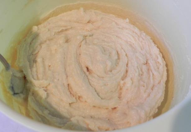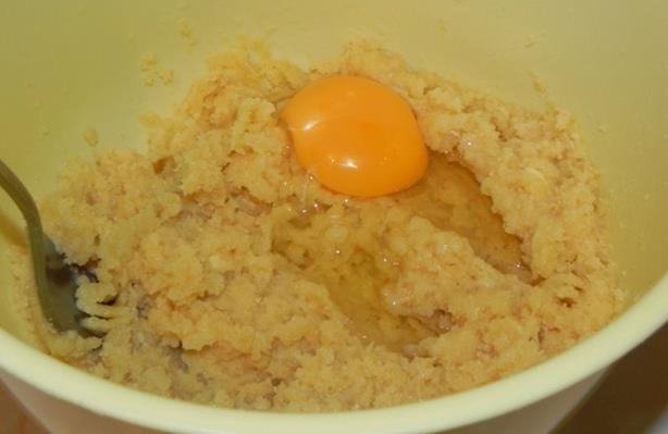 Добавить небольшими кусочками сливочное масло и вымешивать вилкой до однородного соединения масла с миндальной массой:
