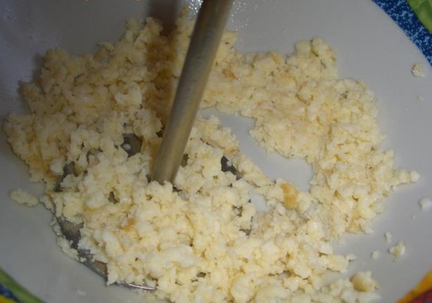 Сделать комочек (руки смочить водой),размять его на ладони, положить начинку.