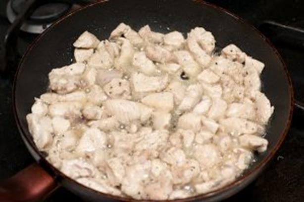 В сковороде разогреть растительное масло и обжарить филе до слегка румяного цвета, добавив соль и чёрный молотый перец по вкусу.