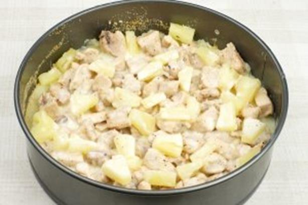 КАРТОФЕЛЬНАЯ ЗАПЕКАНКА С ИНДЕЙКОЙ И АНАНАСАМИ
