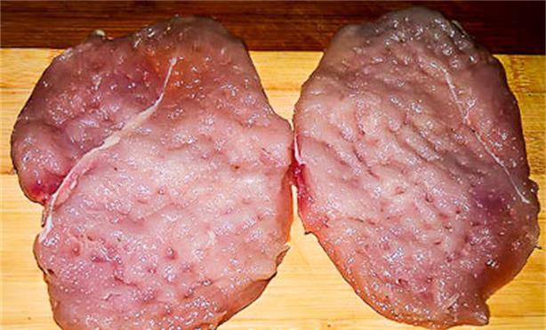 Филе куриное нарезать на пласты. Прикрыть пакетом и отбить.